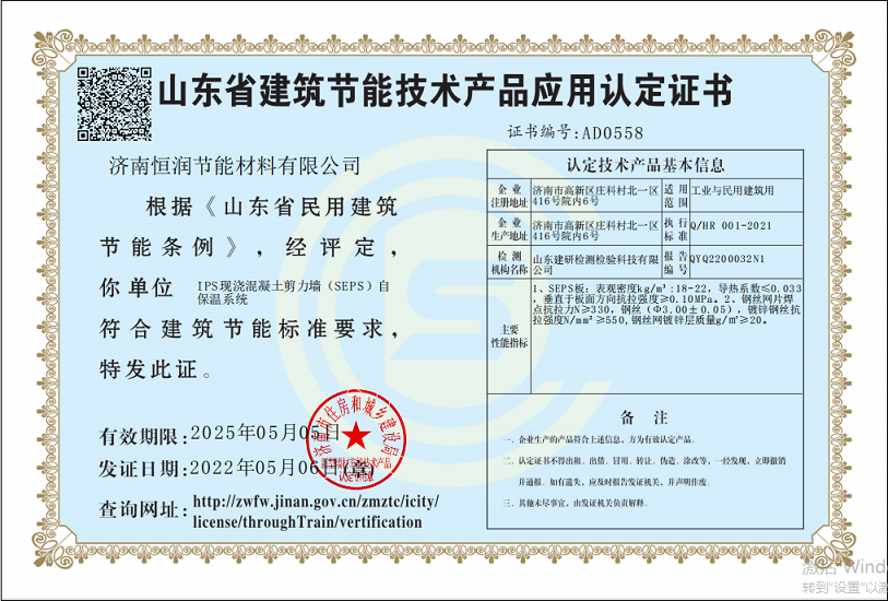 IPS现浇混凝土剪力墙自保温体系认证