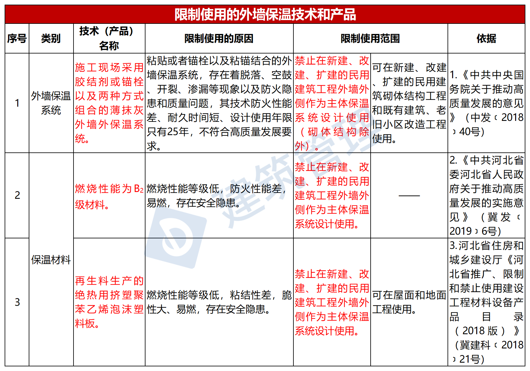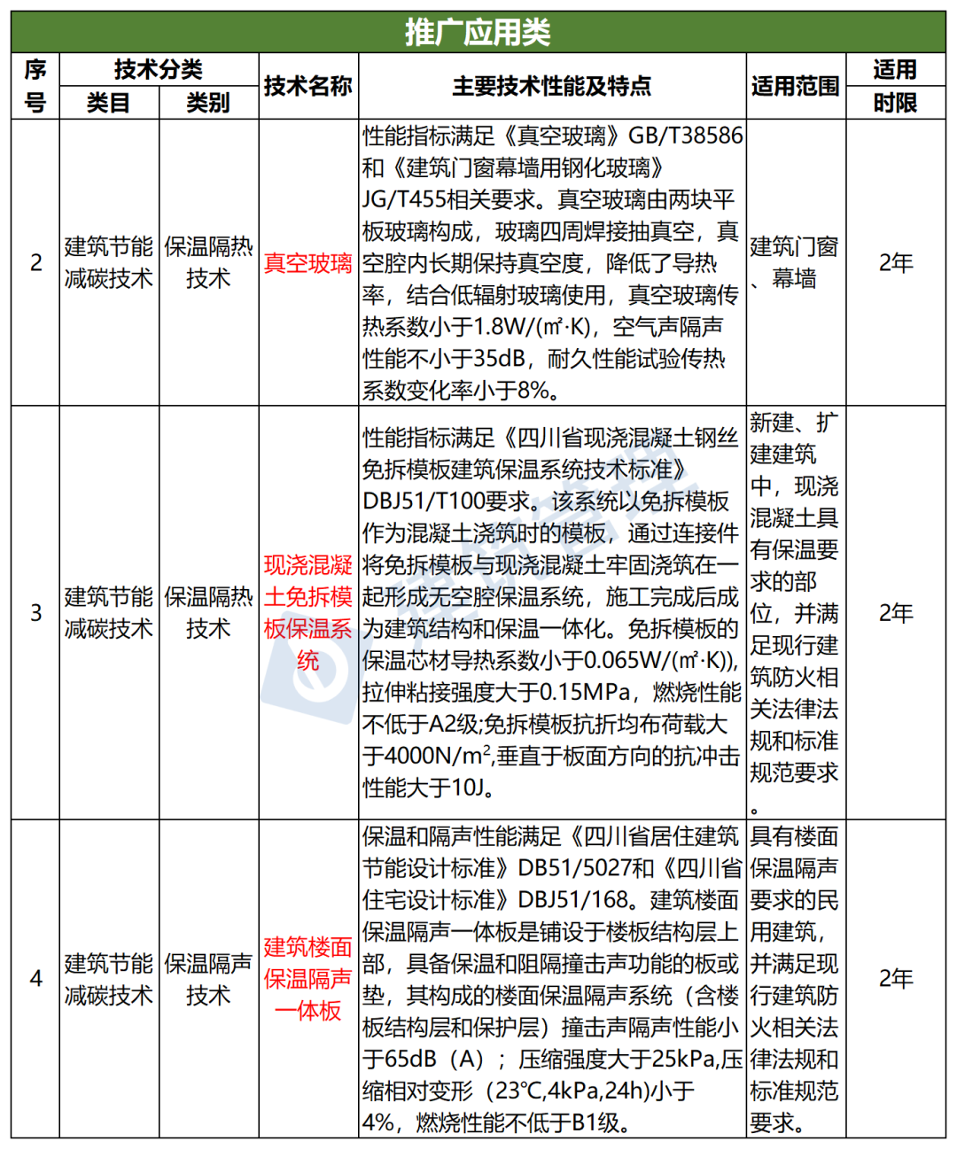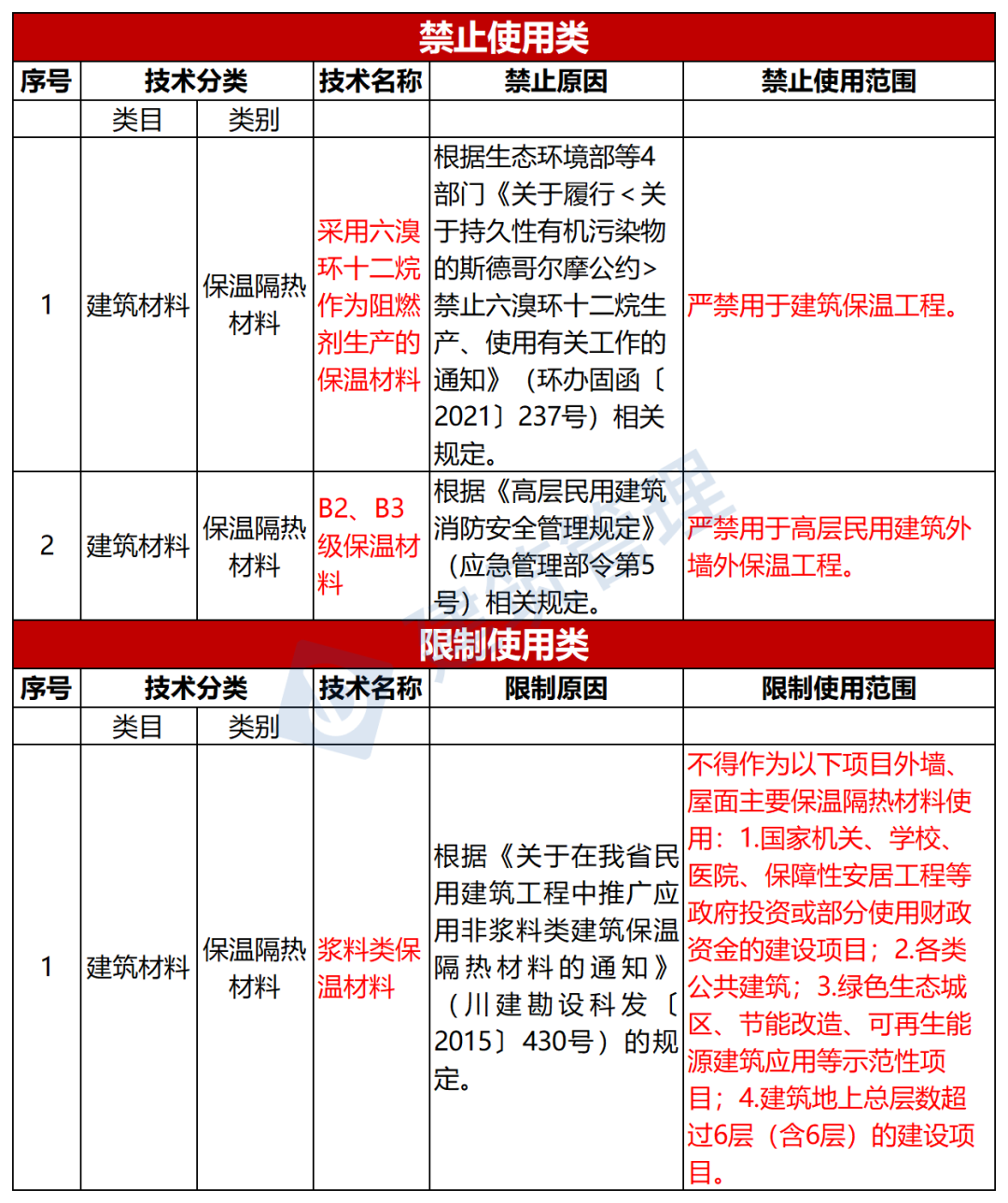 9月22日,四川省住建厅发布《关于<四川省住房城乡建设领域推广应用新技术和限制、禁止使用落后技术公告(第一批)>的公示》,保温隔热材料方面: